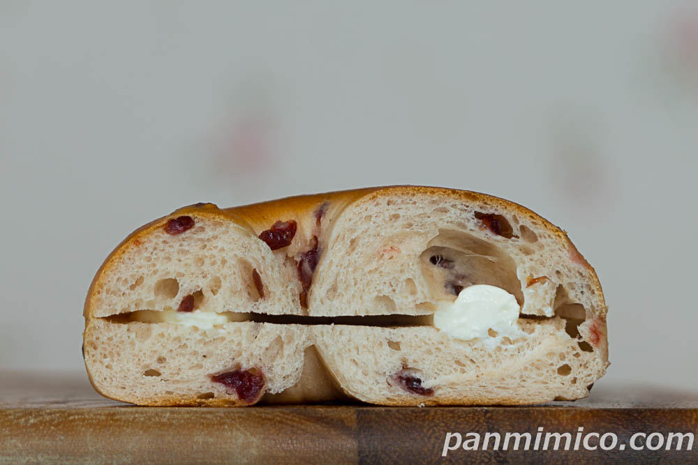 チーズクリームをサンドした、ベーグルサンド。ベーグル生地はクランベリー風味。