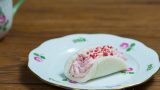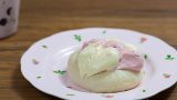 メロン皮もパンもピンク色で。イチゴジャムとチーズクリームをサンドしてますよ~。