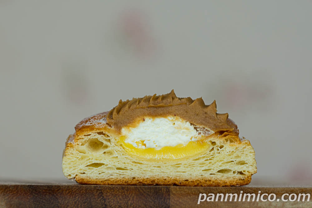 実は、このデニッシュ、マロンクリームだけじゃなくて。クリームは、3段も重なってるんですヨ~。