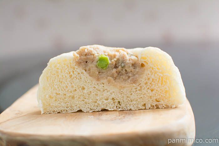 シンプルな白パンにしっかりと味のついたフィリング。フィリングがとろりとゆるめなトコが豚まんっぽい。パンと具材は合ってるコトは合ってる。味は普通。