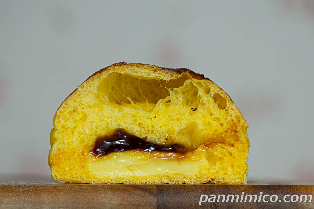 パンは、ふわっふわ~。気泡が開いていて、軽い。しな~っとしている。カスタード風味。