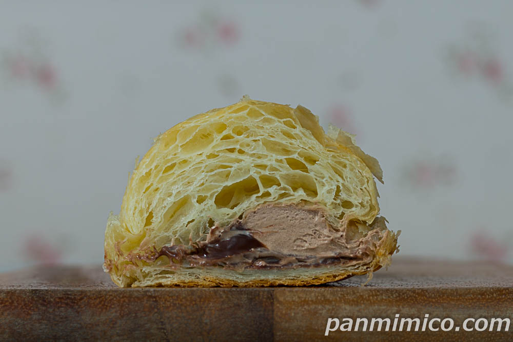 生クリーム入りチョコクリームと、生クリーム入りチョコホイップをサンドしたクロワッサン。パン生地は、生クリームを加えた白生クロワッサン。