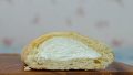 肉厚なフランスパン。それに負けない、ぶ厚いミルククリーム。フランスパンにマーガリンを付けてかじってるような・・・このシンプルさが、フランスっぽい感じでしたヨ~。