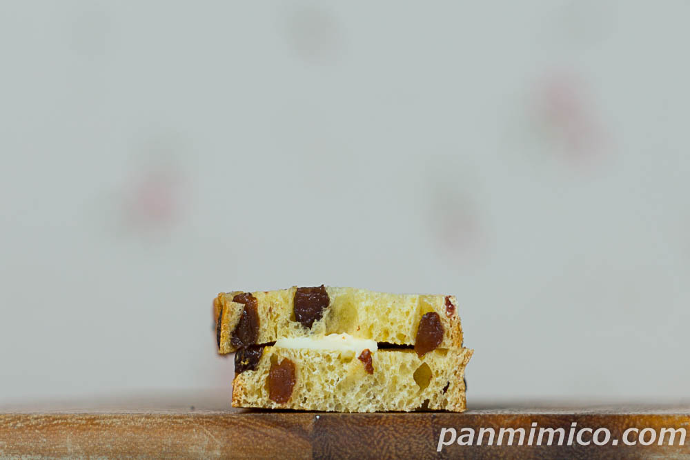 オレンジピールは少なすぎ。ホボホボ、レーズンとクランベリーで。ガブッと行くと・・・ちょっと見分けがつかない感じ。