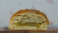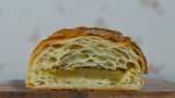タマゴフィリングをサンドしたバゲットクロワッサン。バゲット生地×クロワッサン生地のいいとこ取り。ライ麦使用。