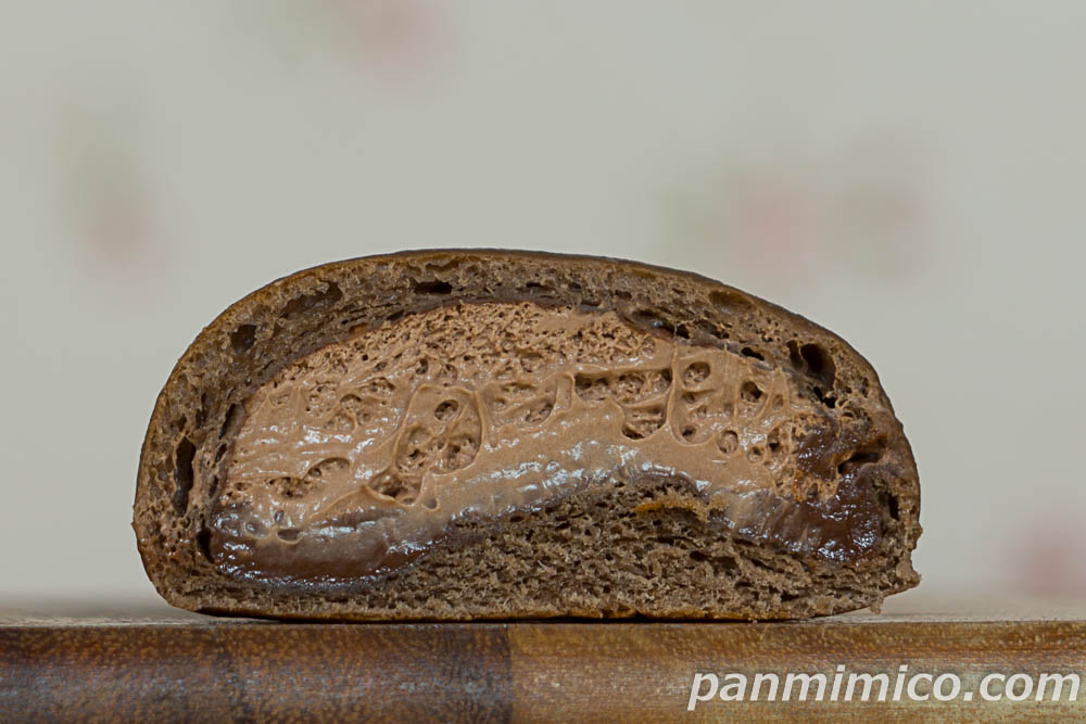 パン生地は、モッチリとして、スパッとちぎれる。ふわふわ、ぷるんぷるん。ほんのりチョコ風味。