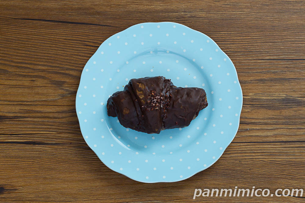 板チョコを包んだ、チョコクロワッサン。チョココーティングと、カカオニブをトッピング。