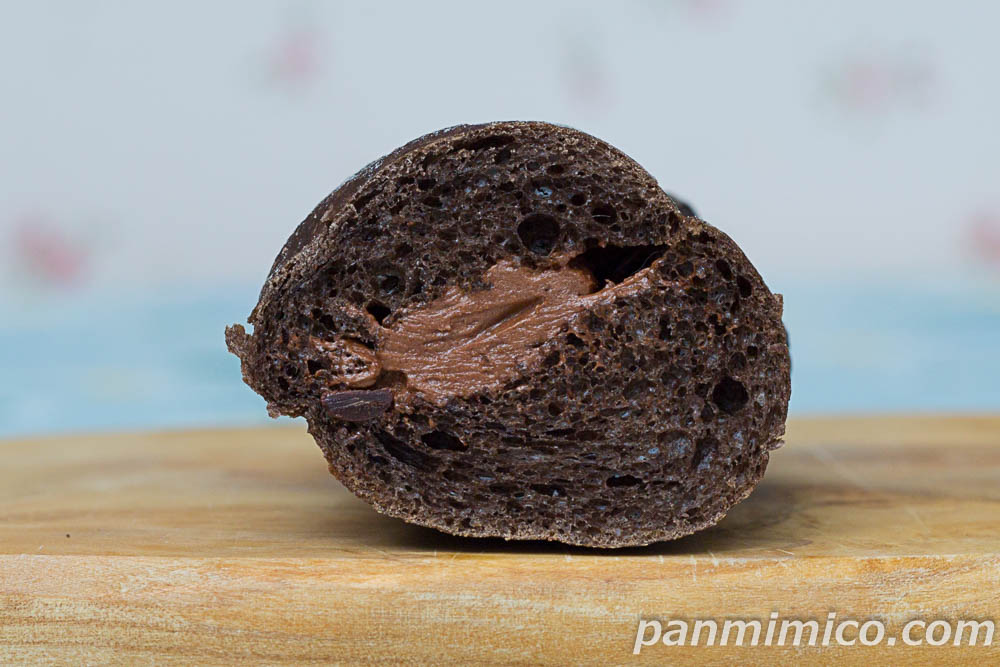 パンは、モッチリ。しっとり。固め。ギッシリとした生地で、噛みごたえがある。噛みしめると、チョコの味。