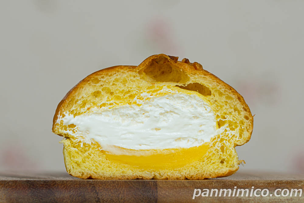 ブリオッシュ生地とカスタードの「タマゴ連合軍」が、背後からホイップを全力サポート。これが、ホイップの純白なミルク感を引き立てるんですよねぇ。