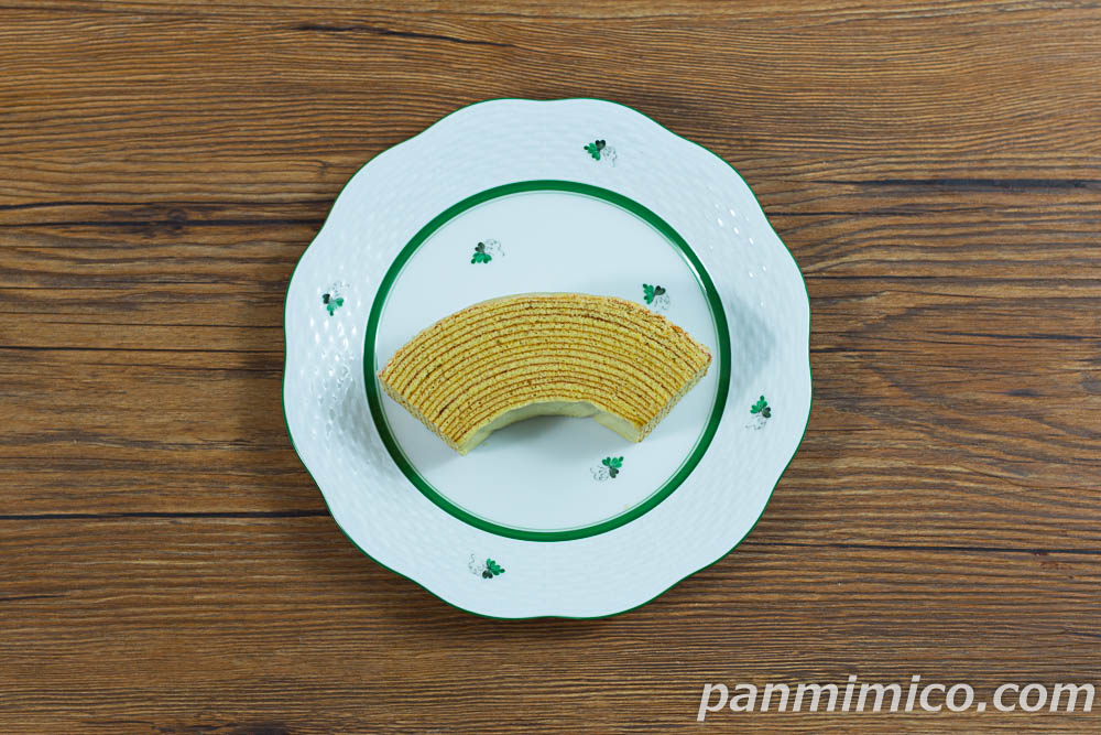 バウムクーヘンは厚切り。層がたっぷり重なってて、サックリ、レイヤー感。ふんわりしてるケド、しっとりしすぎてない。