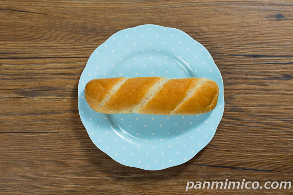 パン生地は、モッチリ。スパッとちぎれる。弾力があるが、ギッシリとした生地。シンプルな小麦感。塩味が効いている。