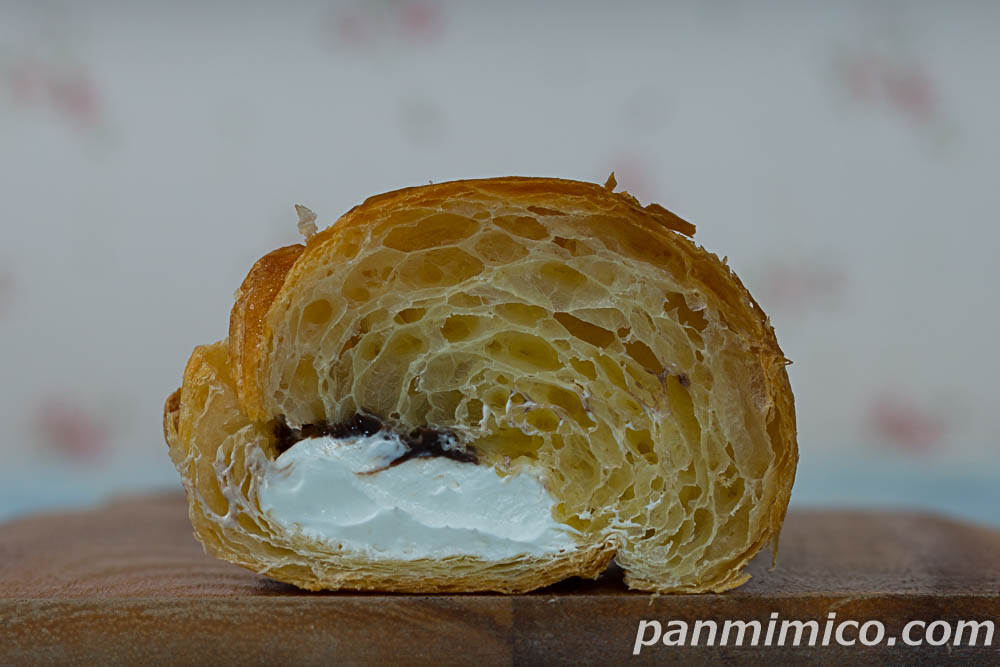 「森永のおいしい牛乳」を使用した生クリーム入り牛乳ホイップとチョコクリームをサンドしたクロワッサン。クロワッサン生地にも、生クリームを練り込んでいる。
