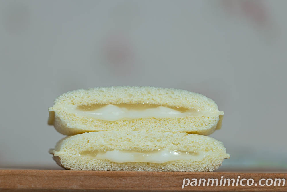 ランチパック(とろリッチ生)生クリーム入り桃クリーム【ヤマザキ】断面の写真