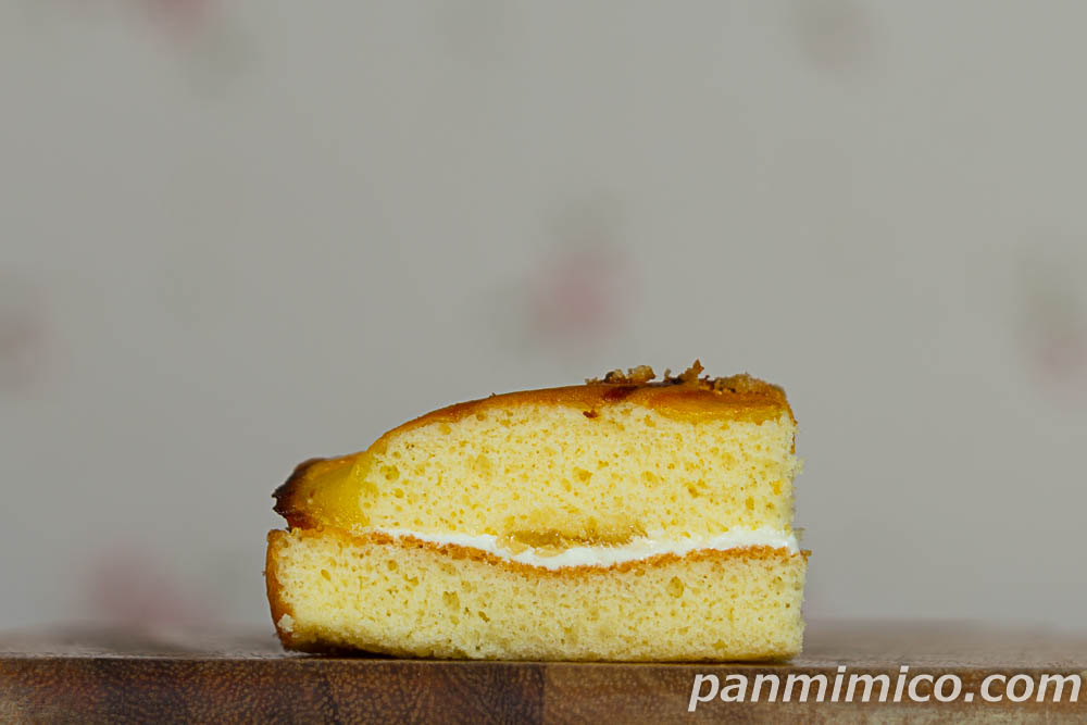 ケーキ生地は、ふわふわ。しっとり。甘くタマゴ風味が効いている。表面は、こんがり焼き上げていて、モチッと、ちぎれる。