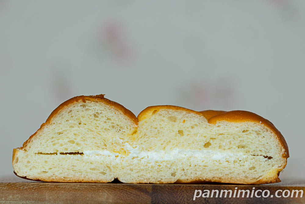 ホイップクリームをサンドしたパン。ケーキ生地をトッピング。自家製発酵種ルヴァン使用。