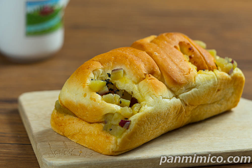 紅はるかのさつまいもあんを折り込んだパン。紅はるかの蜜漬けをトッピング。