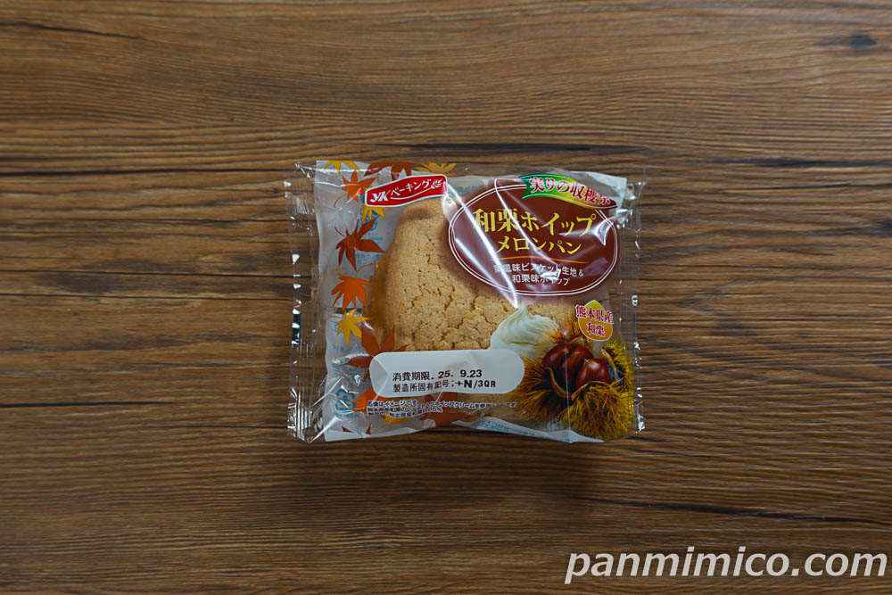 和栗味ホイップを包んだデニッシュメロンパン。和栗味のビスケット生地をトッピング。