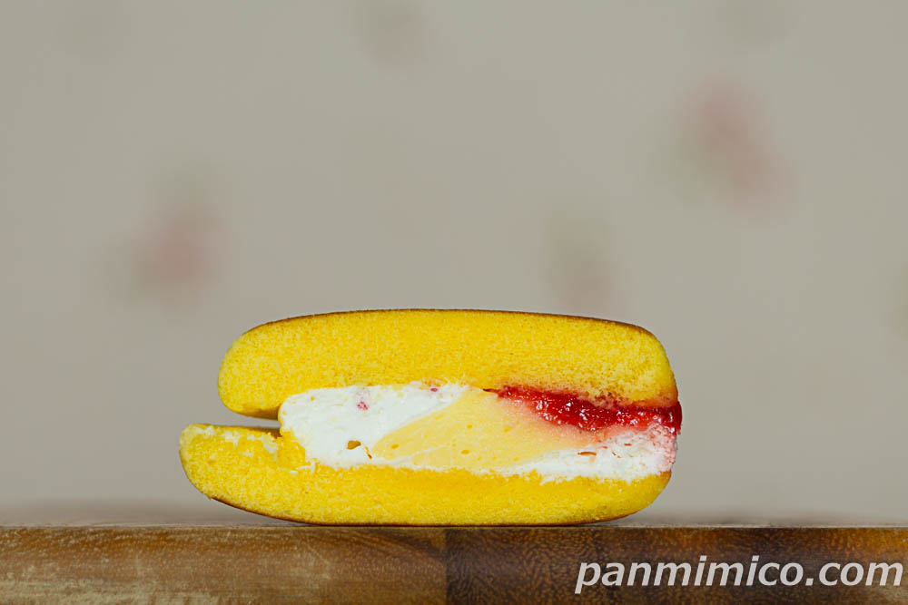 【セブンイレブン】「7プレミアム パンケーキバーガー いちご&ホイップ」断面の写真