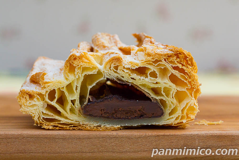 パイは、サックリ。しっとり。たくさんの層がギッシリと重なってるが・・・クチに入れると、ハラハラ崩れる。チョコ風味。