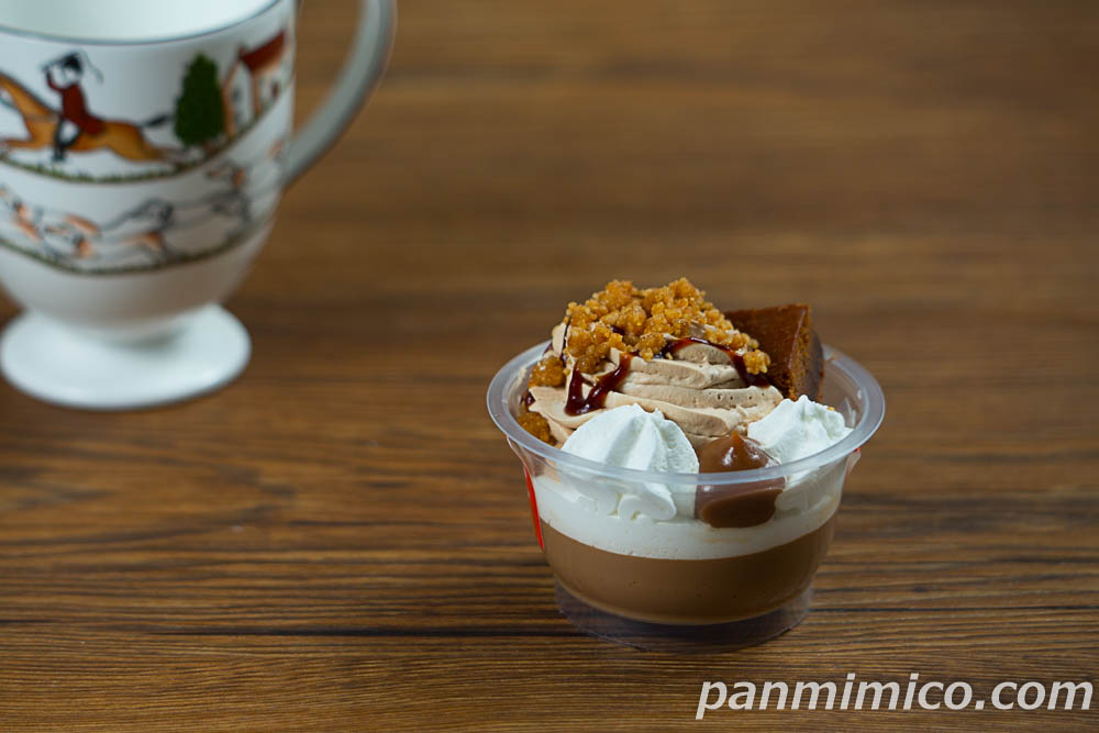 セブンイレブン「紅茶に恋するプリンケーキパフェ」斜めから撮った写真