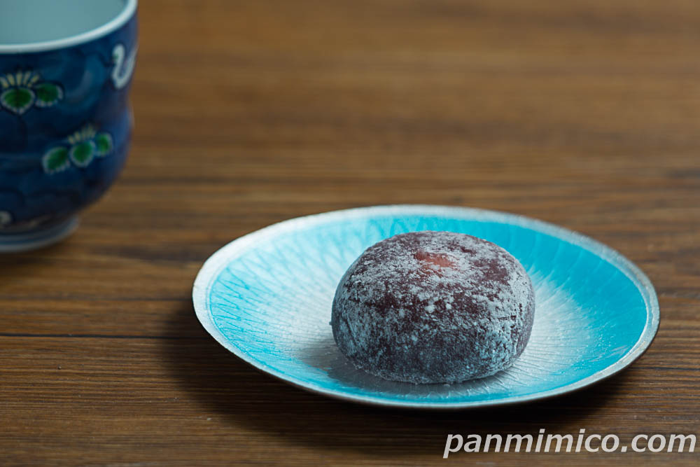 この大福のアサイー風味は・・・あんまり甘くないブドー風味みたいでした~。