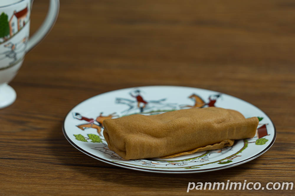 クレープ生地は、モッチリ、モチモチ。タマゴとミルクのまろやかさを感じるが、ほろ苦いコーヒー風味。
