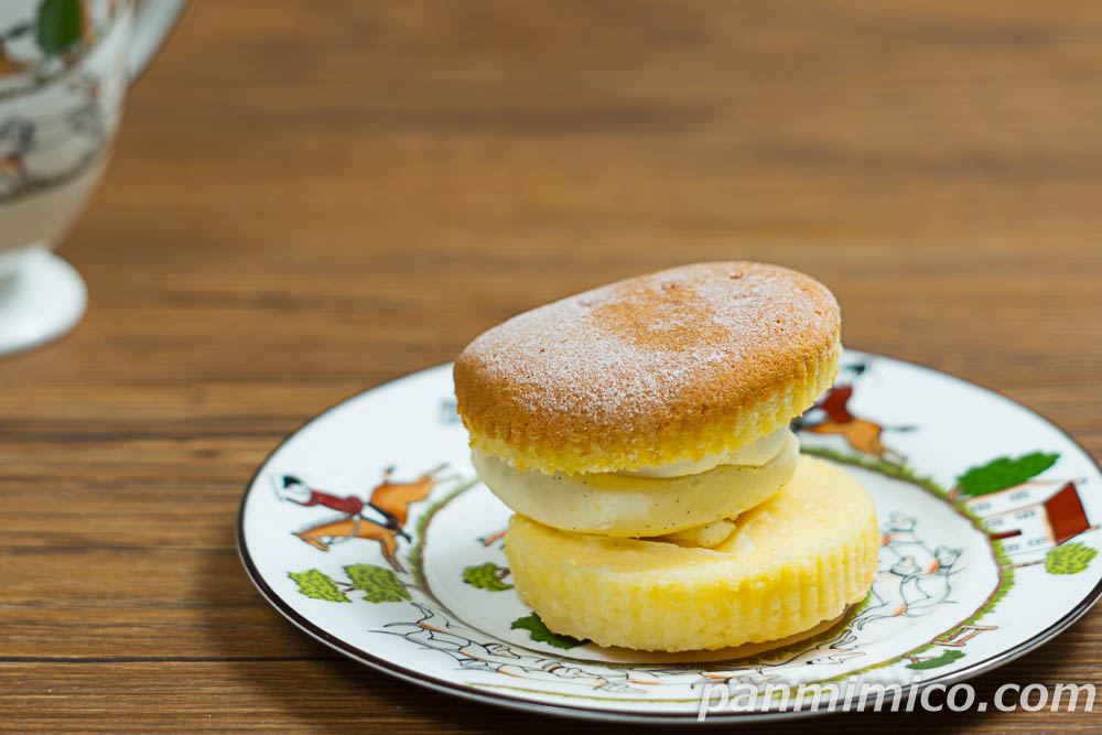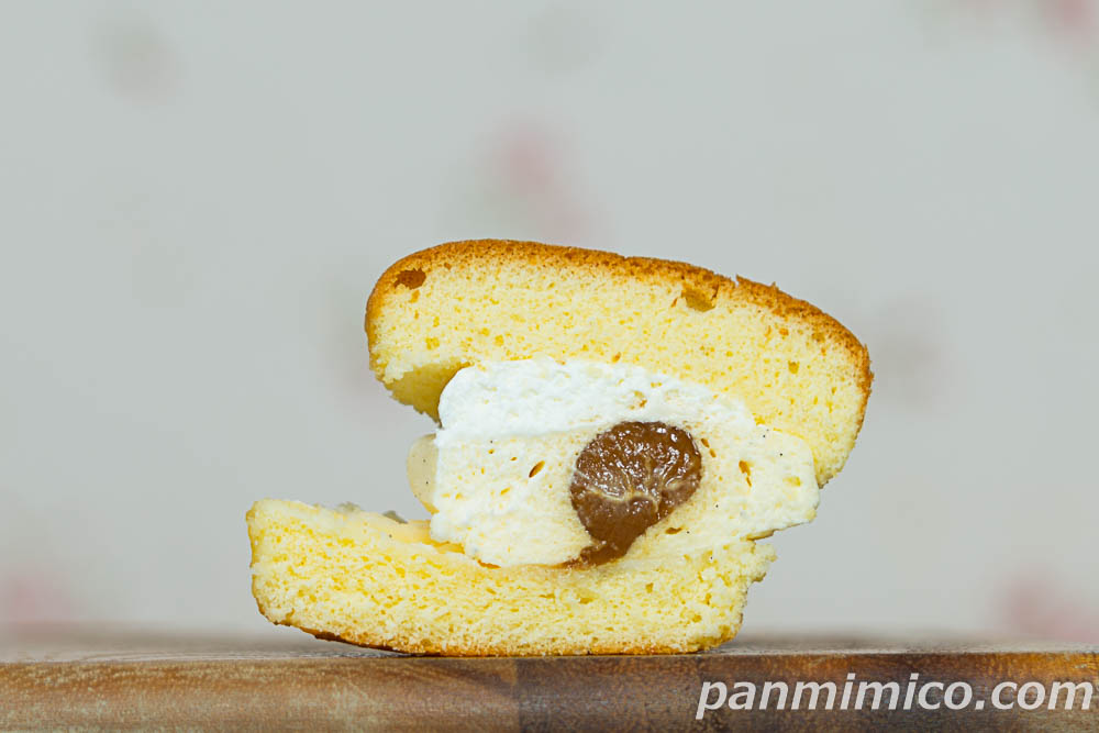 シフォン生地でバタームースとホイップクリームをサンド。バタームースの中には、キャラメルフィリング入り。