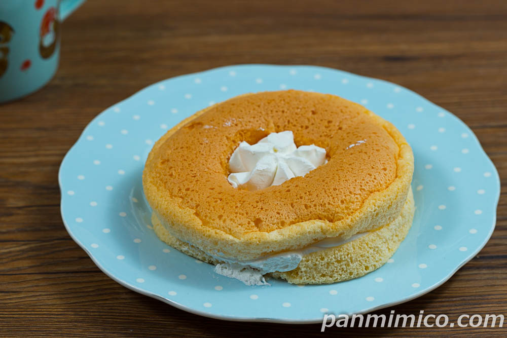 シフォンケーキで挟んでるホイップは、濃いミルク風味だが、スッキリとした風味。ほんのり甘い。