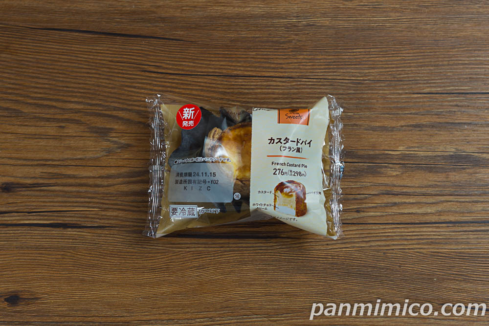 カスタードクリーム(水あめ、植物油脂、砂糖、卵、加糖卵黄、加糖全粉乳、脱脂粉乳、たんぱく質濃縮ホエイパウダー、米粉、卵白粉、食塩、寒天、小麦粉)(国内製造)、パイ生地(小麦粉、マーガリン、ショートニング、油脂加工品、バター、食塩)、牛乳クリーム、ホイップクリーム、マーガリン、チョコレート、砂糖、粉糖、バニラシード/加工デンプン、グリシン、着色料(カラメル、カロテノイド)、ソルビット、香料、乳化剤、pH調整剤、増粘多糖類、リン酸塩(Na)、膨脹剤、酸化防止剤(V.E)。