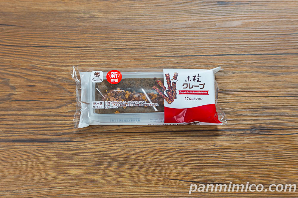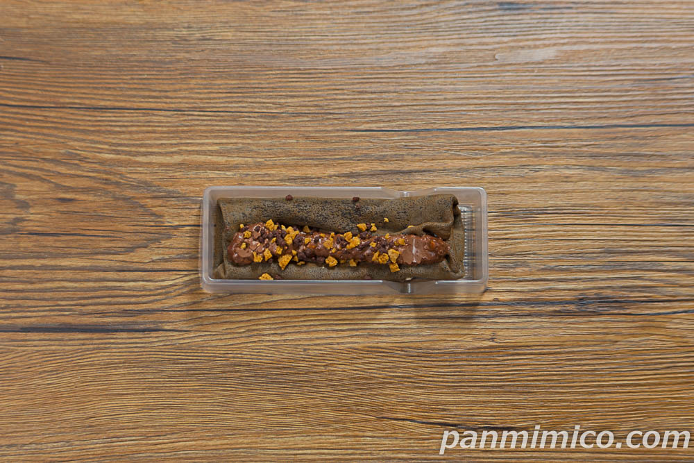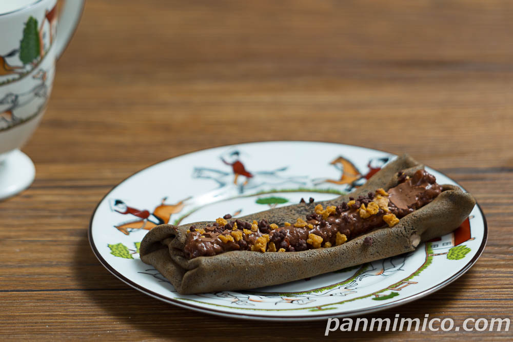 チョコクリーム、クランチ、「小枝」をイメージしたチョコ掛けアーモンドパフをトッピングしたクレープ。