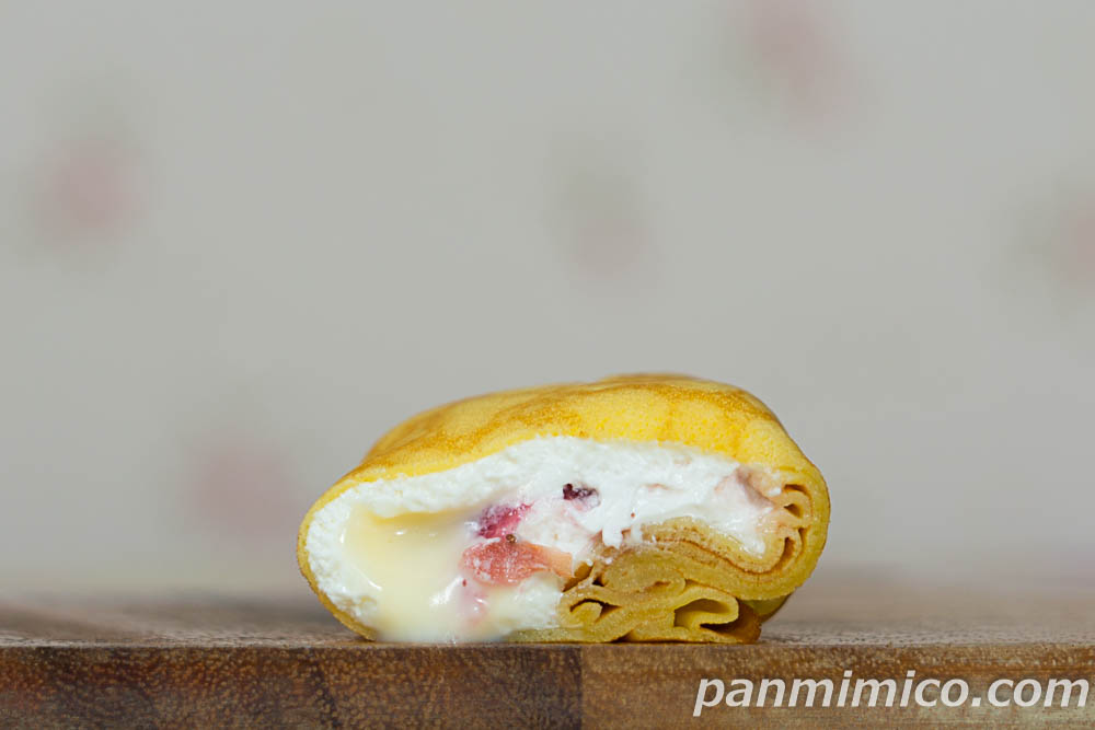 「森永加糖れん乳」を使用したクリーム&ソース、イチゴのソース&ダイスを包んだクレープ。