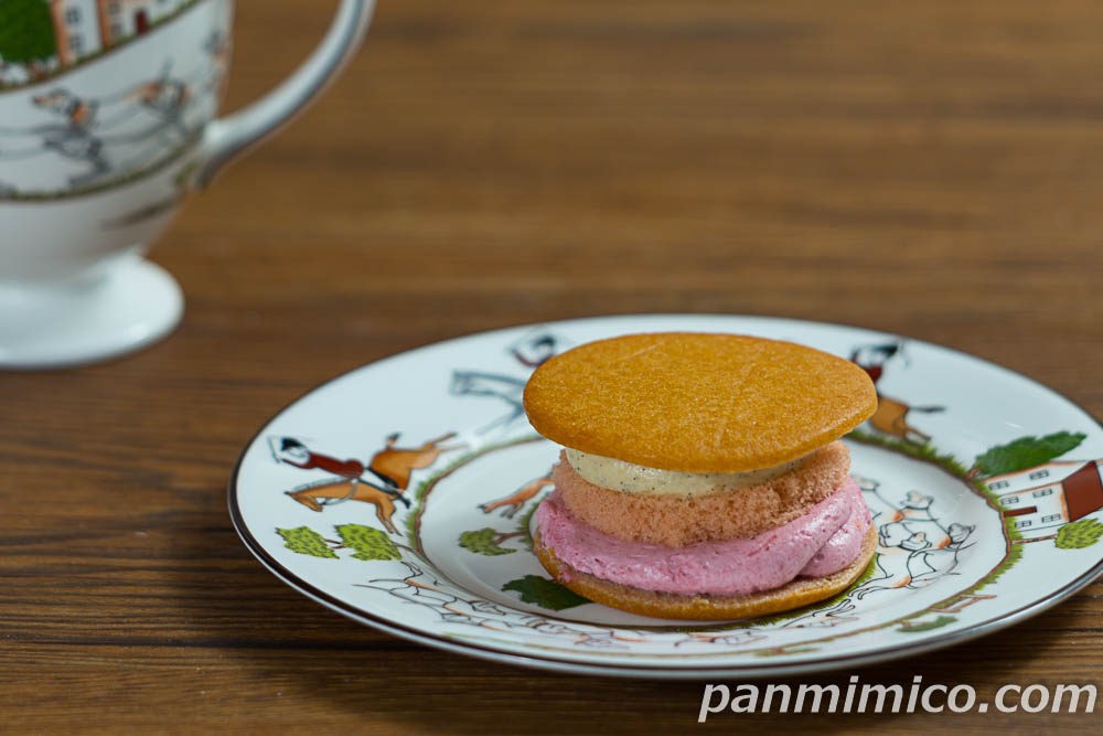 バニラとイチゴ、2層のアイスをサンドした、サブレサンドみたいな感じ。