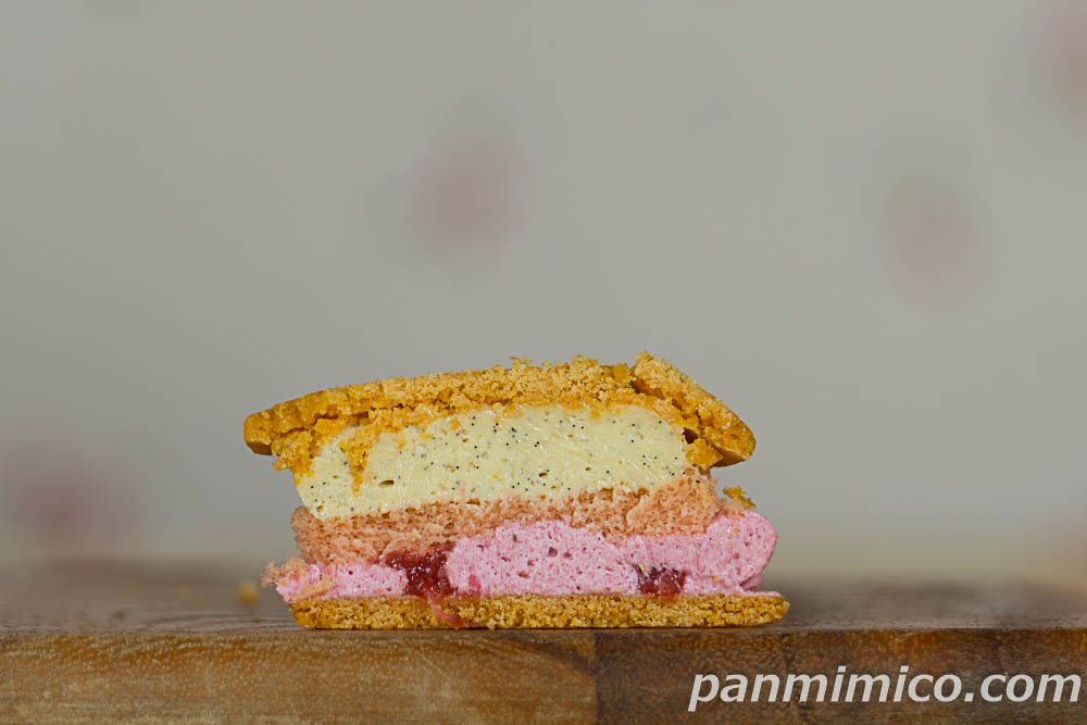 サブレサンド(バニラ&イチゴ)【ファミリーマート】断面の写真