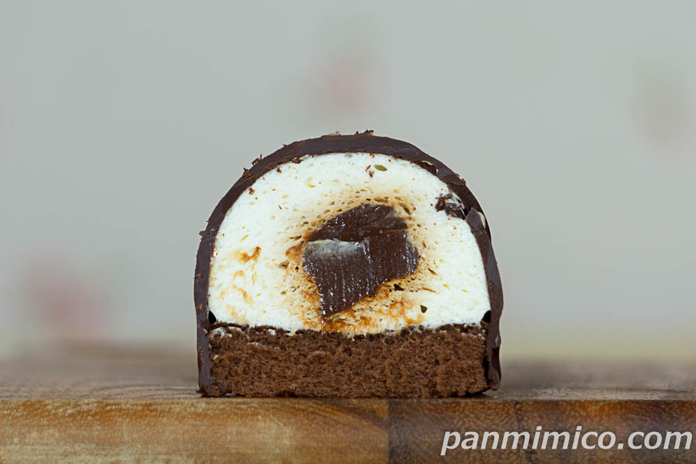 カフェチョコソースとマスカルポーネクリームをチョココーティングしたドーム状のケーキ。