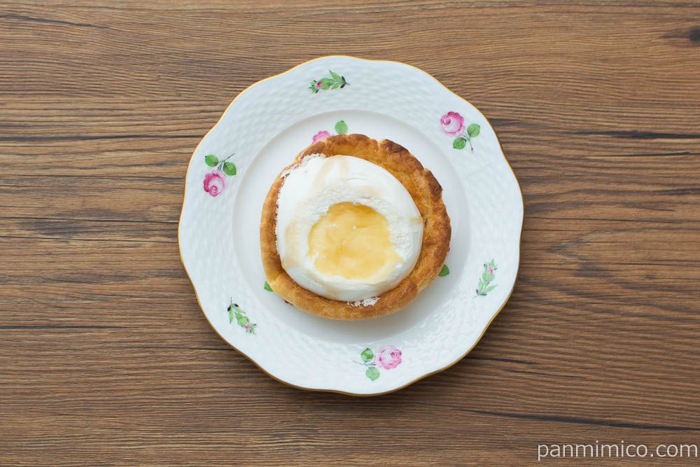 シュー生地は・・・外側は、少し固め。こんがり、焼き上げている。香ばしい。そのせいか・・・少しブリオッシュっぽい。