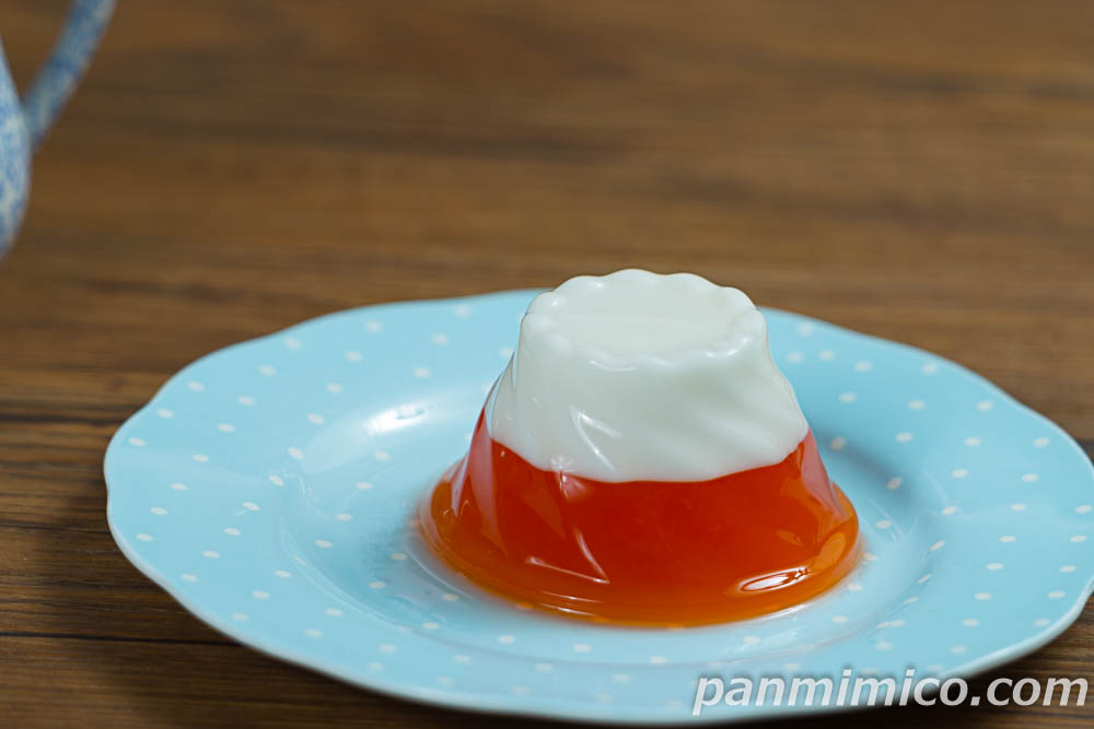 美しいオレンジ色が華やかな「富士山ゼリー」! 赤富士は朝日だそうですが、夕日を思わせるその華やかさに、思わず幸運が舞い込んできたかと思っちゃいました~。