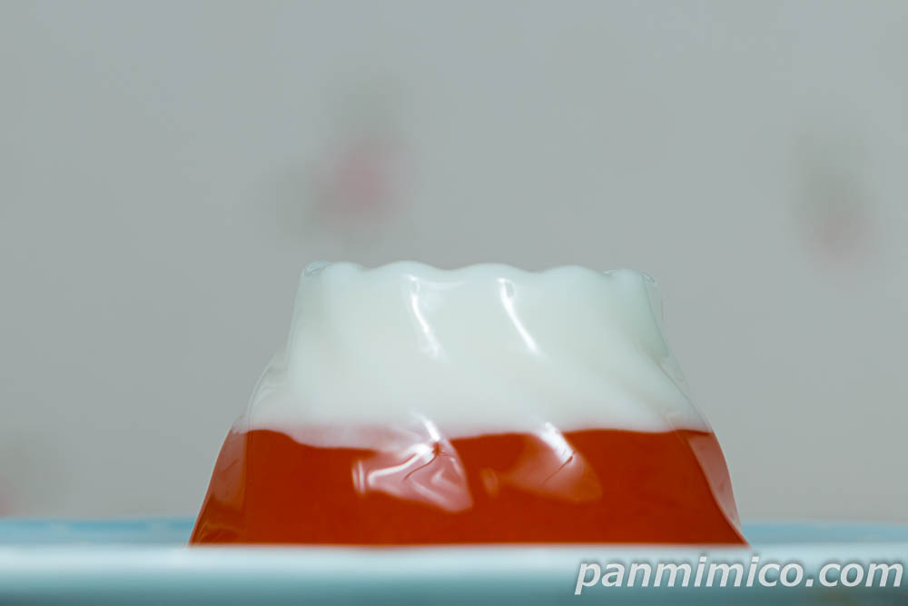 縁起の良い赤富士をイメージした、2層のゼリー。ブラッドオレンジ果汁とヨーグルト風味。