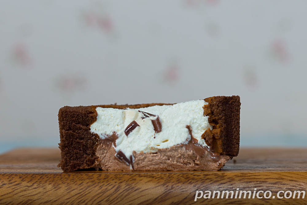 中のクリームは、底にチョコホイップ、真ん中にチョコクリーム、上には、バニラホイップ。
