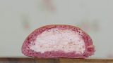 モッチリしてて、可愛らしいイチゴ色。見た目はバッチリなんですが・・・なんか、変な味がするとゆーか、ちょっとフシギな風味が残っちゃいました~。