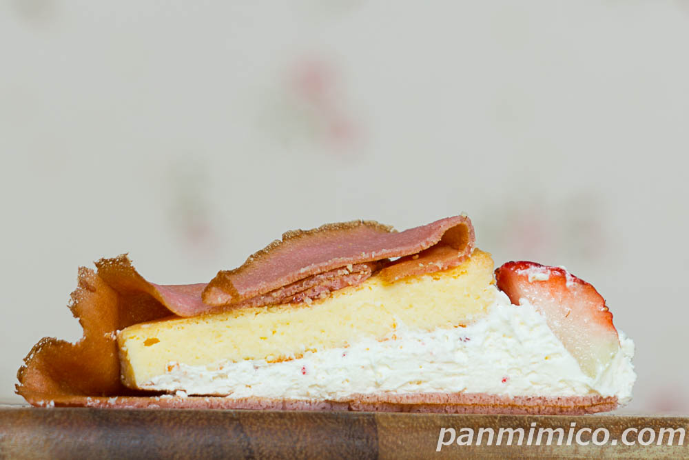 可愛らしいピンク色のクレープに包まれて・・・中からチーズケーキが出てきました~。