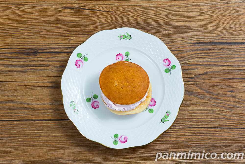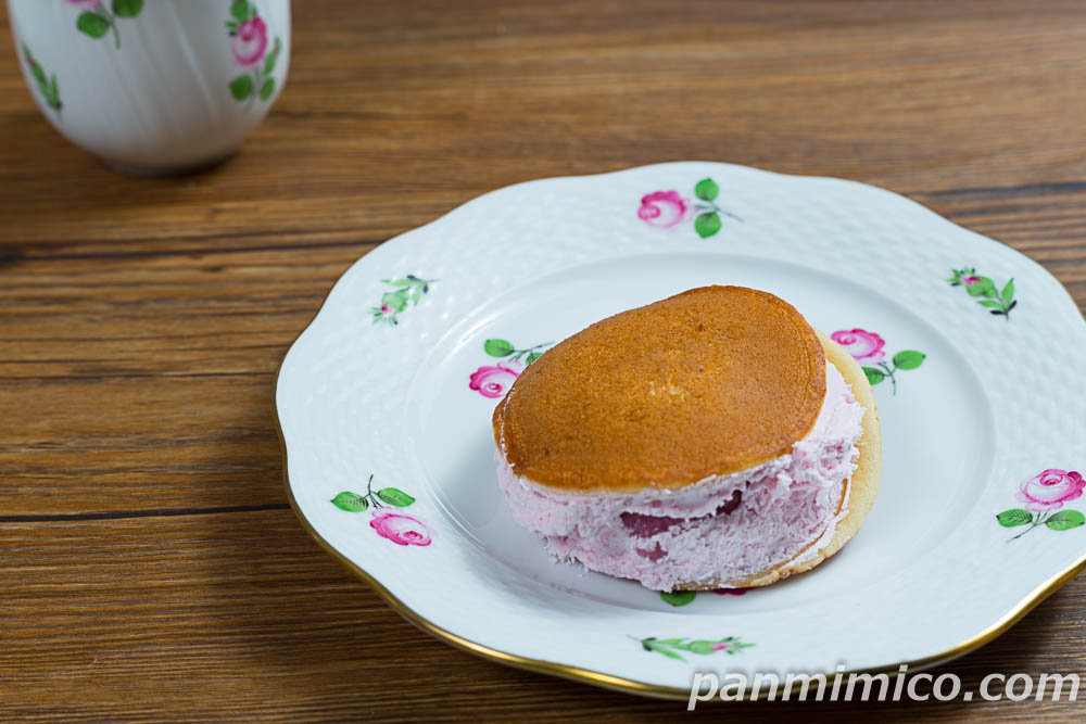 桜餅と、苺風味ホイップをサンドした、どら焼き。